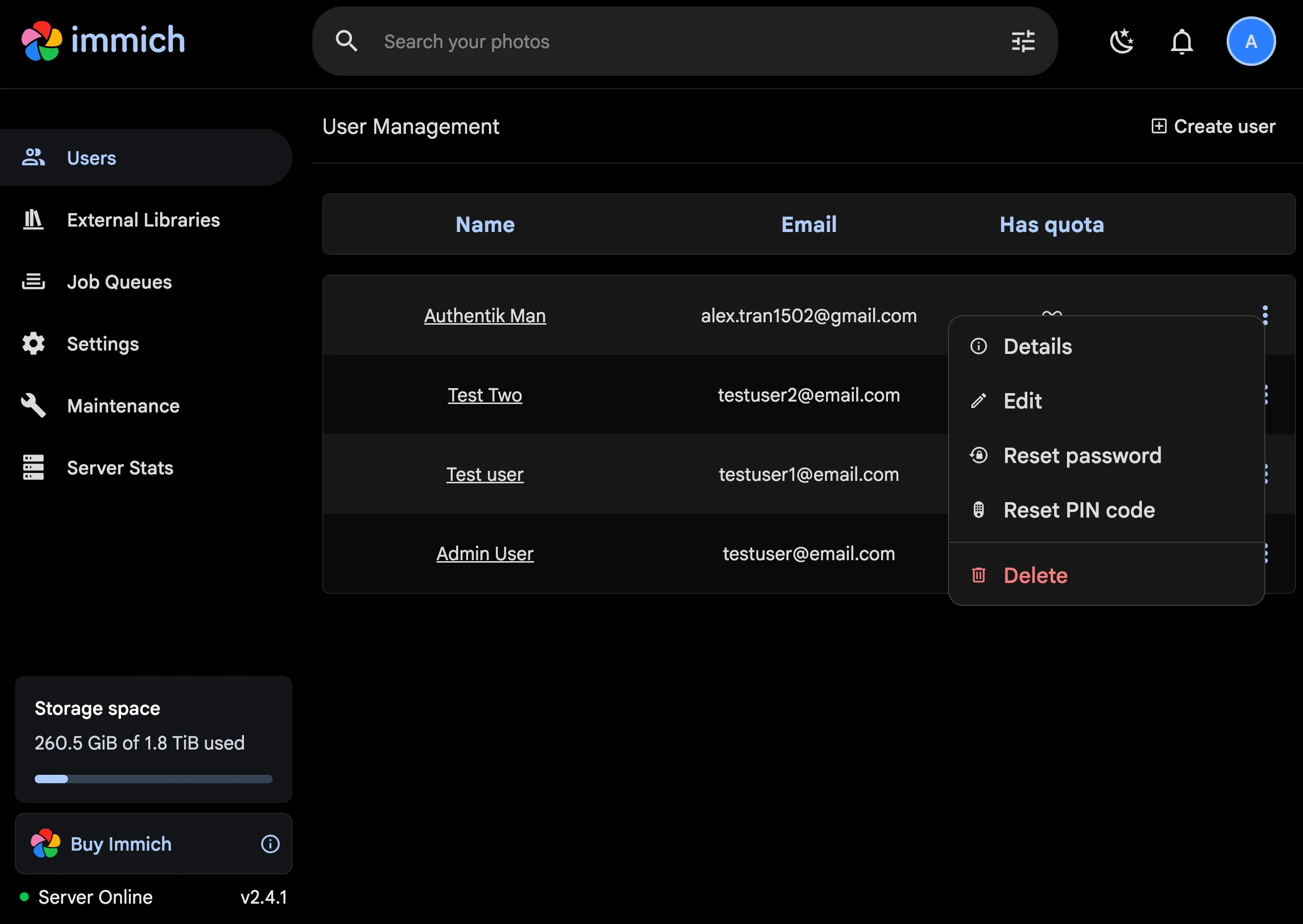 On the Administration > Users page, you can click on the Create user button, and you'll be presented with the following dialog: