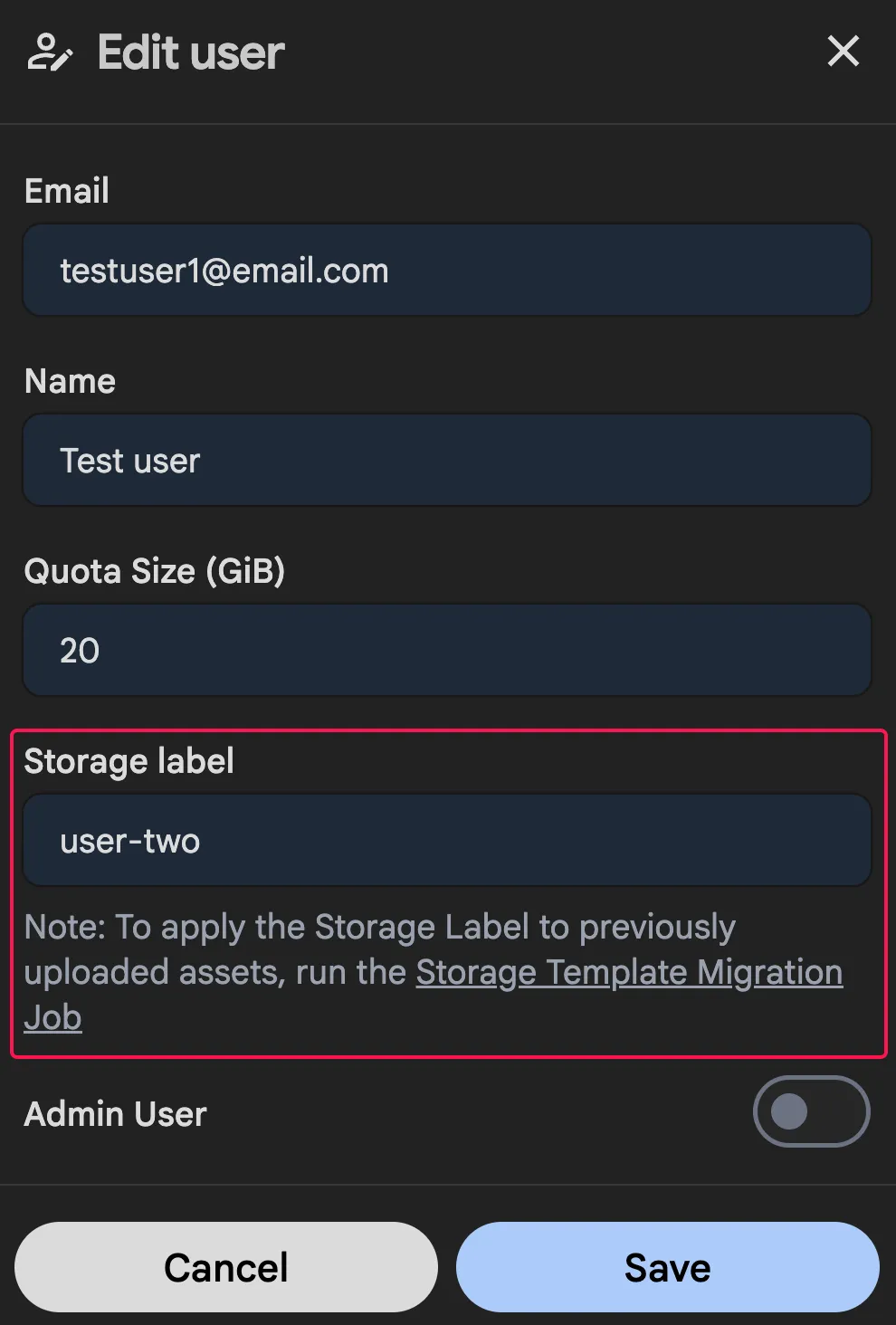 Set Storage Label For User