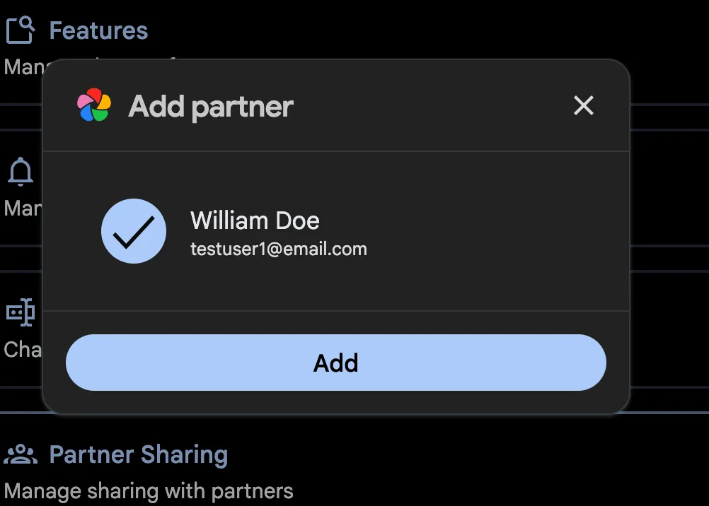 - Partner sharing is one-way. To view your partner's assets, they must also share them with you.