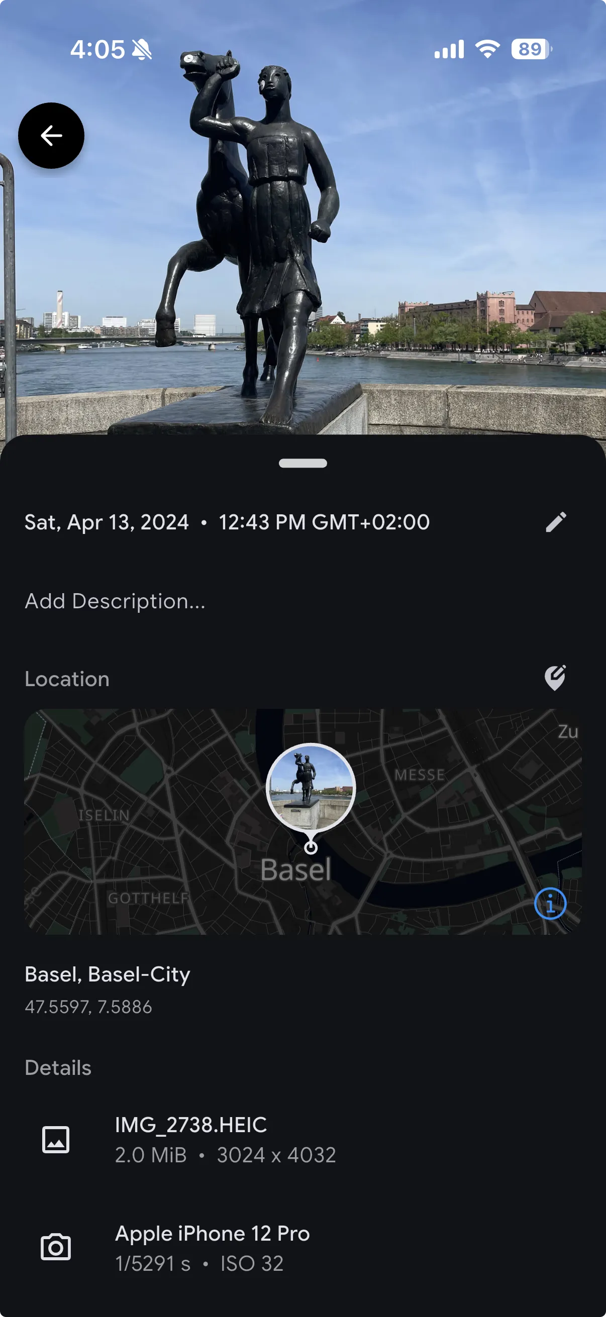 Data from a reverse geocode is displayed in the image details, and used in Smart Search.
