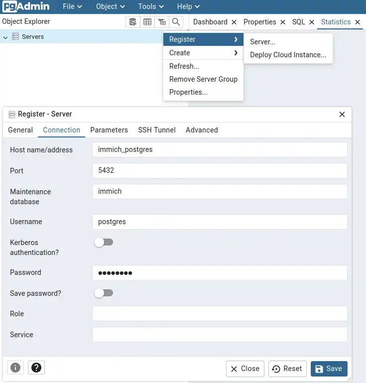 Run docker compose -f docker-compose.yml -f docker-compose-pgadmin.yml up to start gallery along with pgAdmin.